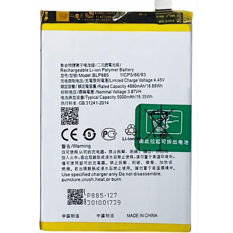 n411 Bateria BLP885 OPPO A76 2022 (CPH2375) 5000mAh/19.35Wh